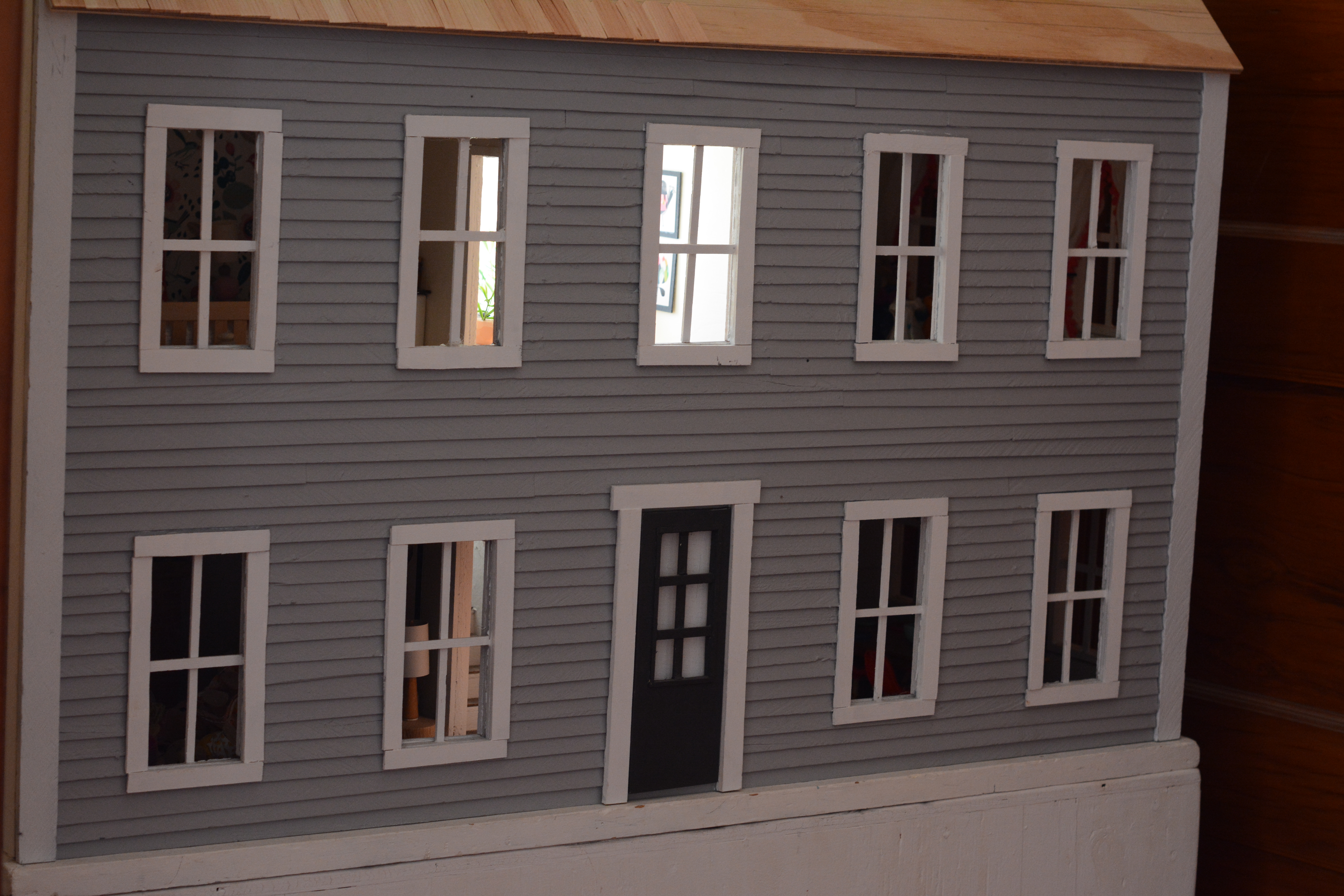 Previous Image Next Image DSC_2110 I tore off the old roof of the dollhouse and I am currently replacing it with a wood shingled one. I don’t think I’ve ever shown the front of the house…so, here it is!
