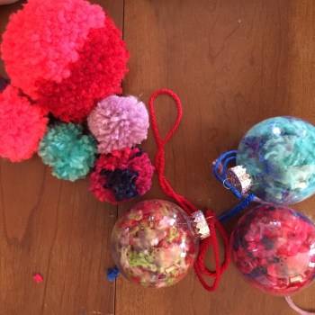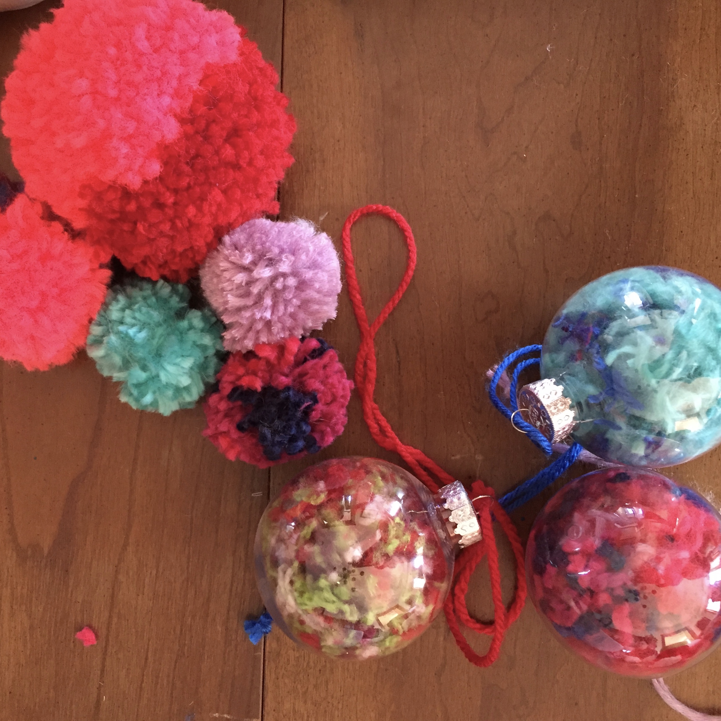 Previous Image Next Image fullsizeoutput_1d27 I had the idea to stuff the pompom trimmings into a clear bulb ornament so that no scraps were wasted