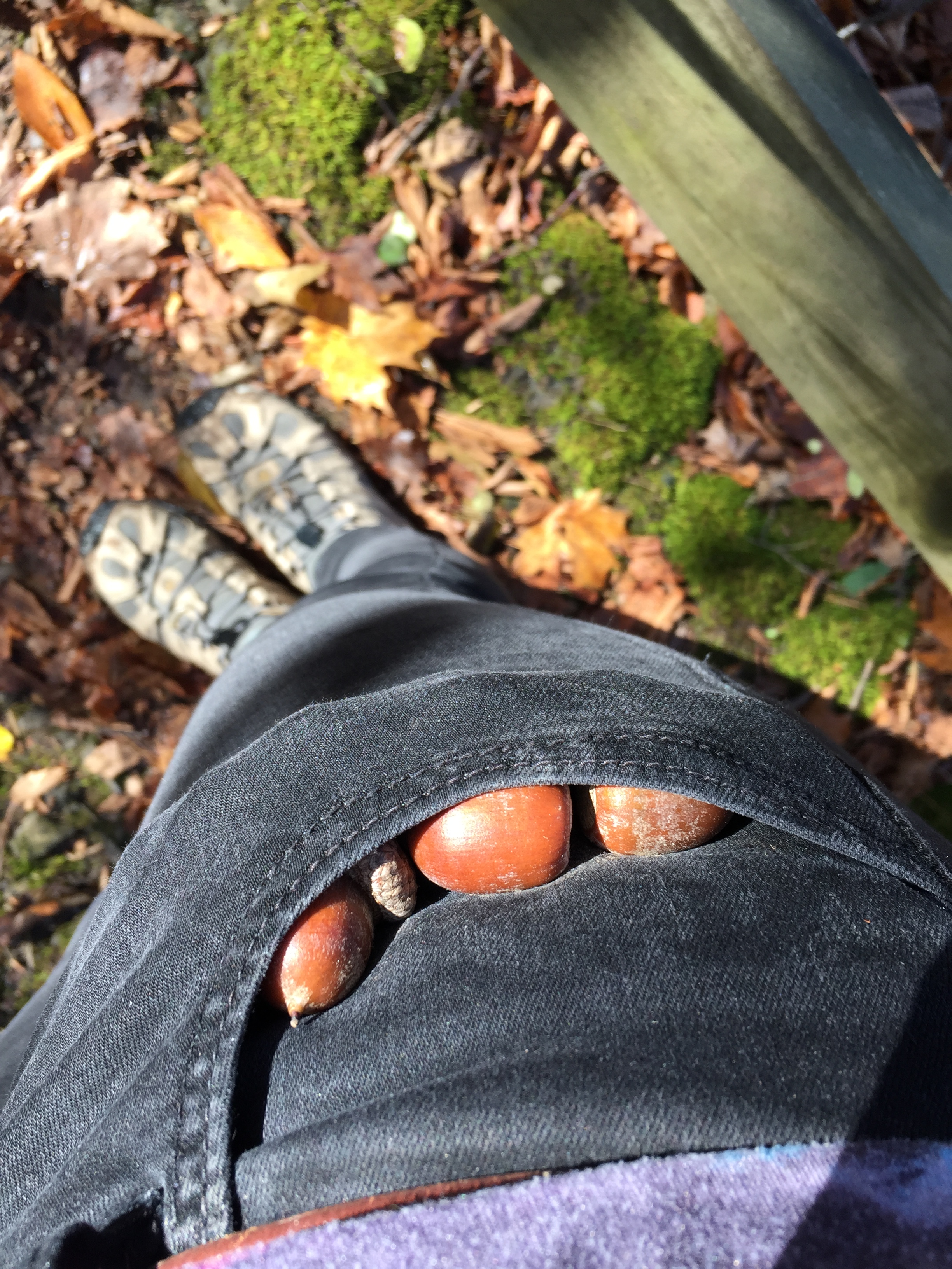 pockets full of acorns after a hike in the park