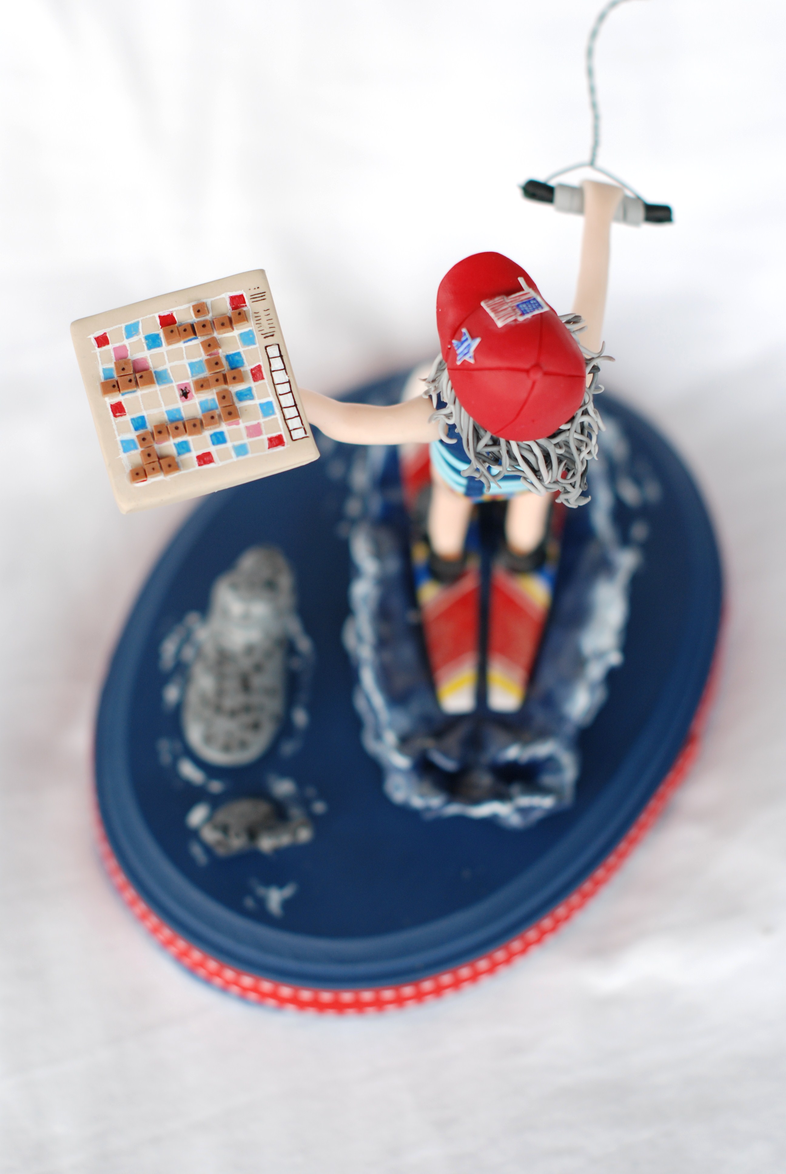 waterski grandma with scrabble board